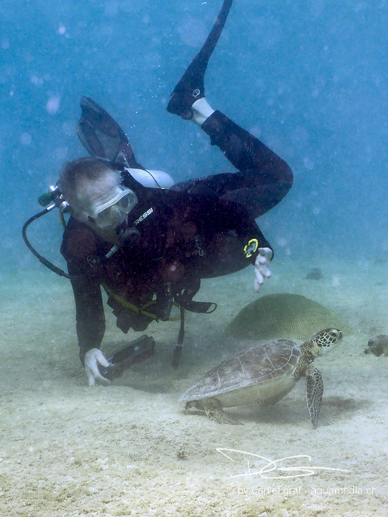 Eine wahre Herausforderung! Olympus OMD EM II oder iPhone 17 Pro? Die EM II kenne ich natürlich sehr gut, weiss wie es um die Beleuchtung mit Blitz und Videolampe steht sowie Blende, Verschlusszeit und alles mögliche, das man unter Wasser brauchen kann. Aber ein iPhone 17 Pro mitnehmen?