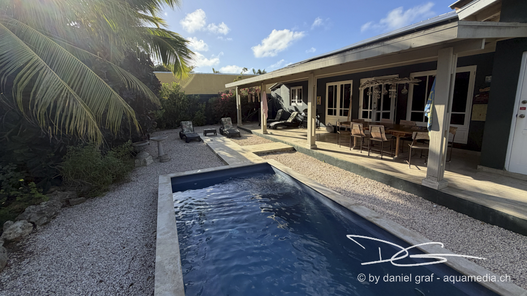In diesem Casa haben wir 2 Wochen verbracht - ausgezeichnet! Mit Dusche, zwei Schlafzimmer, grossem Kühlschrank, Pool und Parkplatz sowie Pflanzen, Katzen, Vögel und Kolibris und nicht zu vergessen Iguanas vermissten wir nichts. Bevor es vergessen geht: Auswaschgelegenheit für Tauchutensilien gibt es auch noch.